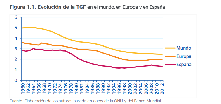 En la Figura 1.1 se puede observar la evolución de la TGF en Europa, España y el mundo durante los