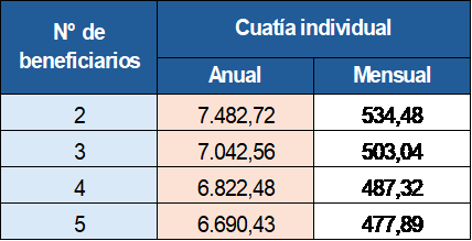 En este caso, la cuantía individual de cada beneficiario se calcula conforme a la siguiente fórmula de cálculo: