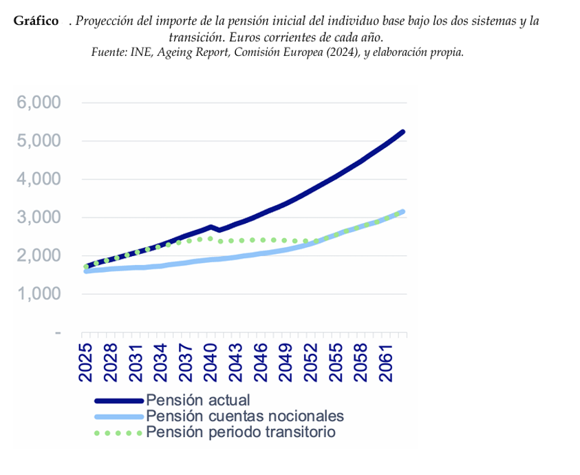 Transición a un sistema de pensiones de cuentas nocionales: bajaría el gasto hasta un 40% y la pensión media un 12%